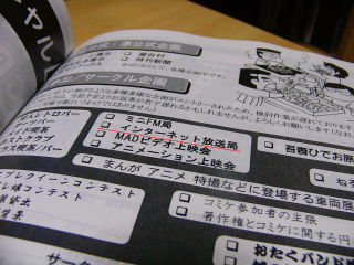 次回の夏コミは8月12〜14日。普通に金・土・日です。あと、24耐春コミの情報が載ってます。「こんな企画が来てます」みたいな感じで申し込みのあった企画の抜粋が掲載されてて、ホントに多種多様なものがありますなぁ。「インターネット放送局」とか。あ、これ自分が申し込んだ奴だ。詳細は今度書く。